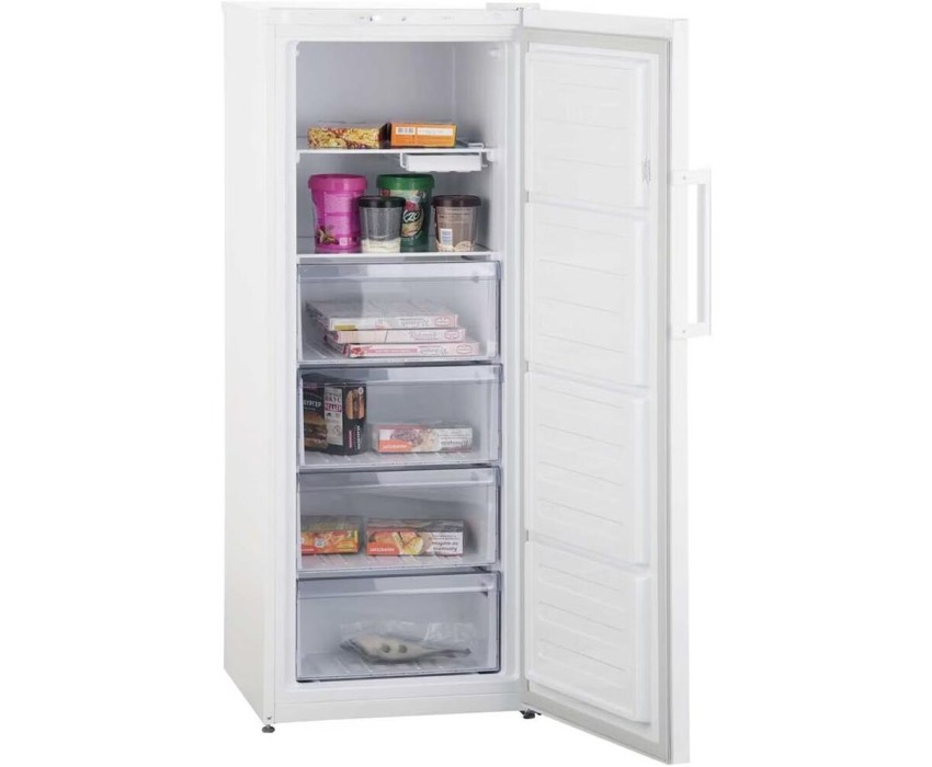 Размеры без упаковки (ВхШхГ), см - 150x54x60. Вертикальный морозильник. Размеры (ВхШхГ), см: 150х54х60. Общий объем 215 л. Полезный объем 213 л. 1 компрессор (R600a). Электронное управление, внутренний дисплей. Ручная разморозка. Быстрая заморозка Quick Freeze. Время сохранения t°C без электричества: 22 ч. Уровень шума: 40 дБ. Перенавешиваемая дверца. Внешняя ручка. Антибактериальное покрытие резинового уплотнителя. Cигнал открытой двери, 4 ящика, стеклянные полки (закален. стекло): 5, лоток для льда. Мощность замораживания: 9 кг/24 ч. Климатический класс: SN-ST. Класс энергетической эффективности: А. Энергопотребление в год: 322 кВт/ч. Цвет: белый