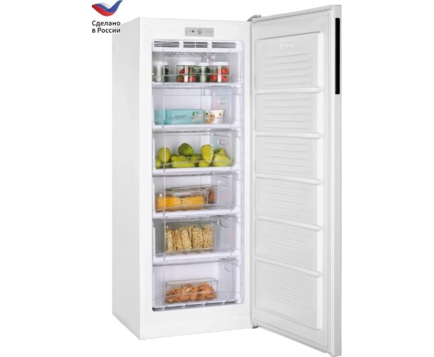 210 л, класс А+, 6 секций МК, 5 выдвижных ящиков из пластика, 147х57х63 см, новая вертикальная ручка, съемный уплотнитель двери, цвет: белый