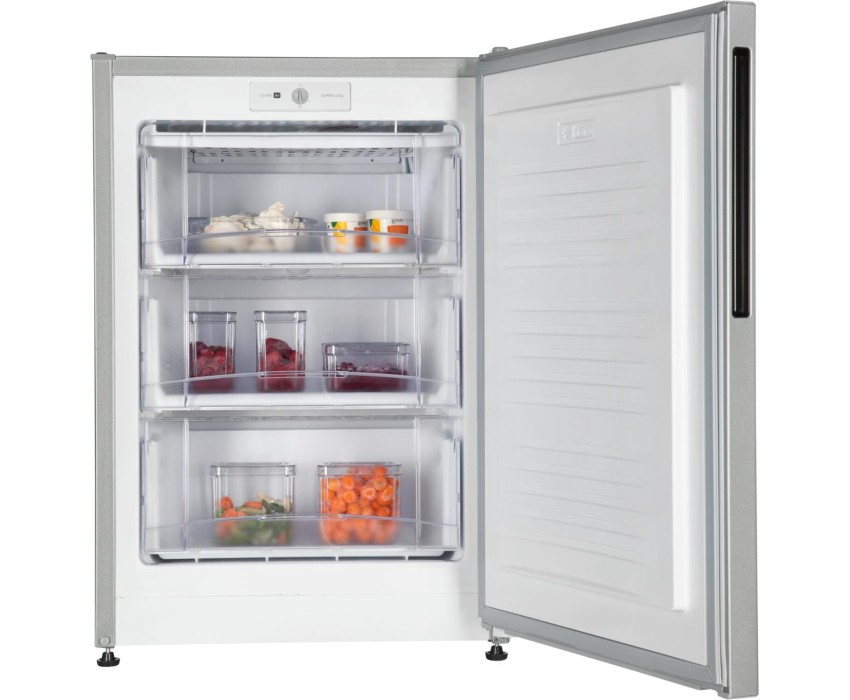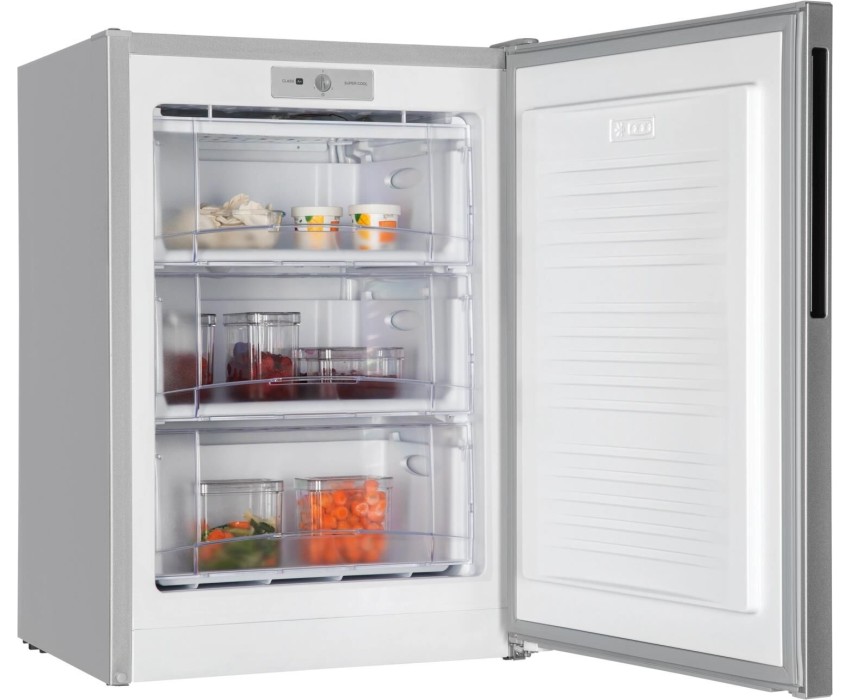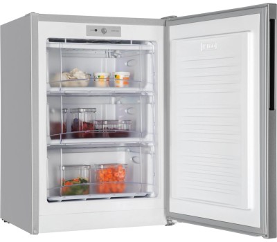100 л, класс А+, 3 секций МК, 3 выдвижных ящика из пластика, 85х57х63 см, новая вертикальная ручка, съемный уплотнитель двери, цвет: серебристый