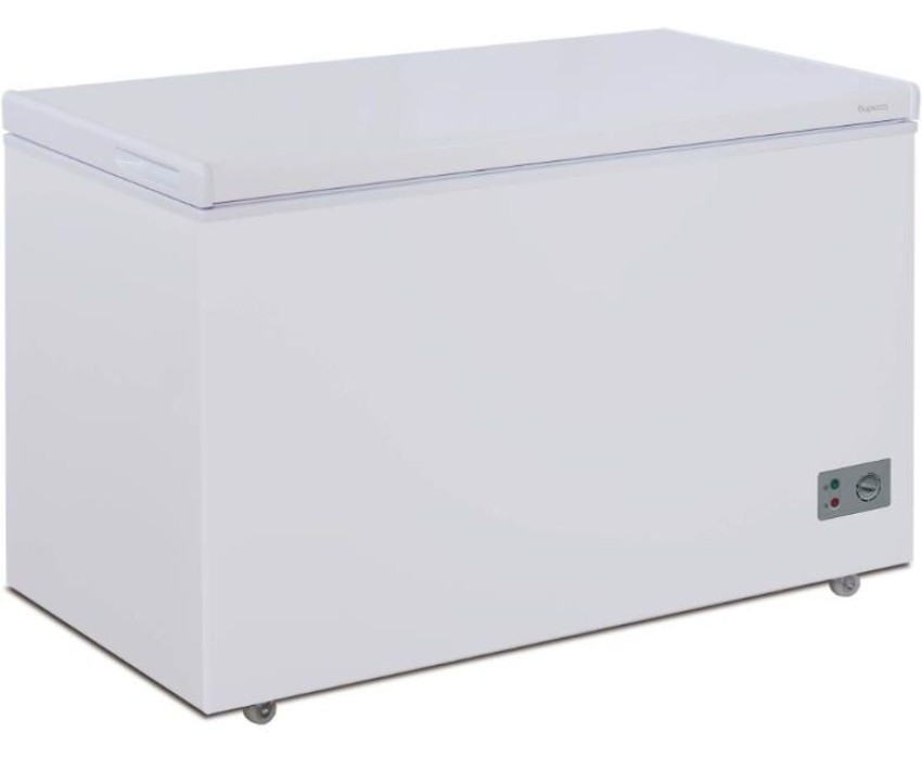 Морозильный ларь; Общий объем, л: 330; Цвет: Белый; Тип двери/крышки: Глухая; Тип компрессора: Инверторный; Количество компрессоров: 1; Минимальная температура в морозильной камере: -18 °C; Количество корзин: 2; Сигнализация повышения температуры в морозильной камере; Управление: Механическое; Режим: "Быстрая заморозка"; Суточный расход электроэнергии, при температуре окружающего воздуха 24°C: 91 кВтч; Температура хранения не выше: -18 °C; Мощность замораживания: 25 кг/сутки; Размораживание морозильной камеры: ручное; Климатический класс: N, ST; Максимальный уровень шума: 40 дБ; Автономное сохранение холода: 20 ч; Класс энергоэффективности: А; Номинальная потребляемая мощность: 53 Вт