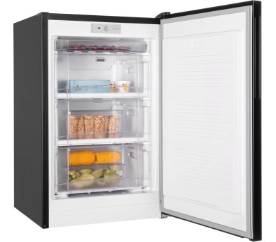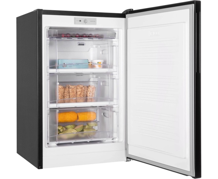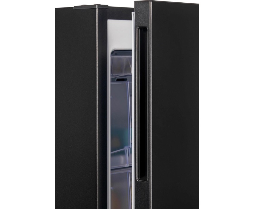 105 л, класс А+, 3 секций МК, 3 выдвижных ящика из пластика, 1 лоток для ягод, 93х57х63 см, новая вертикальная ручка, съемный уплотнитель двери, цвет: черный матовый