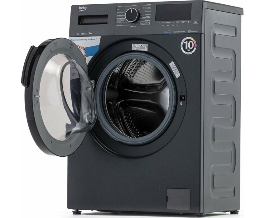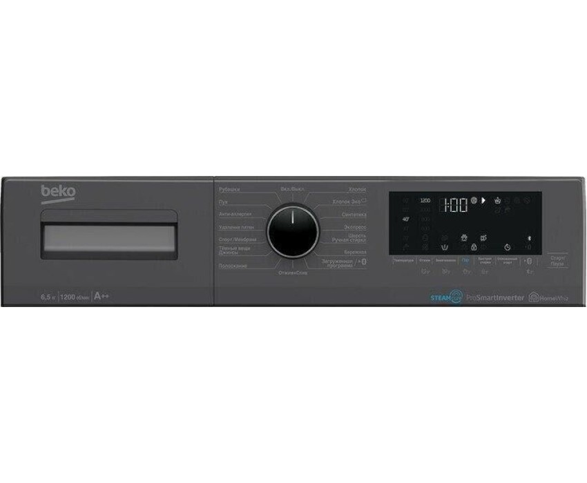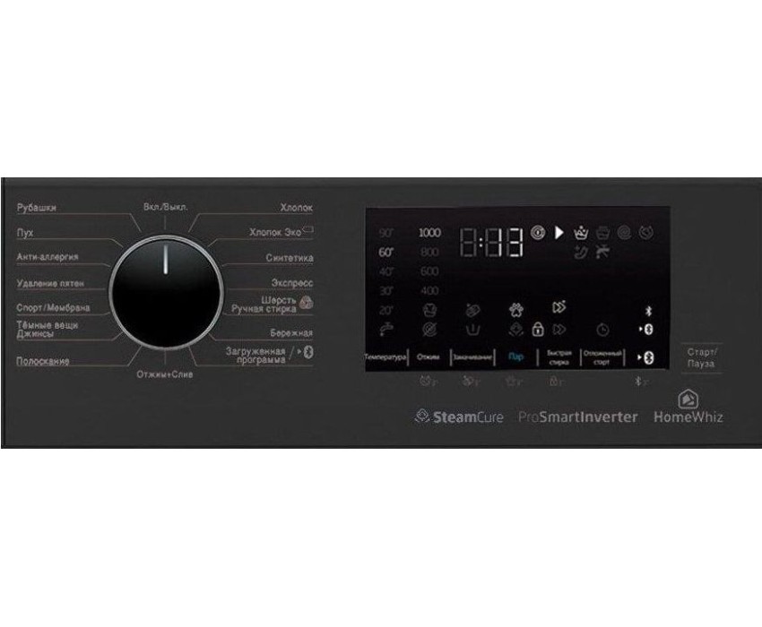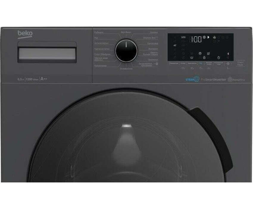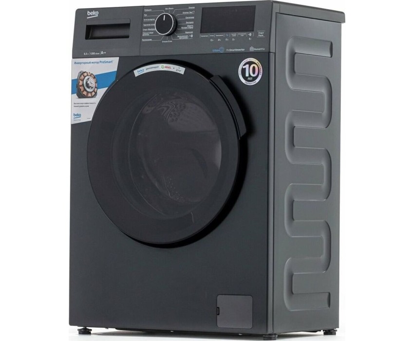 Инверторный мотор. (ВхШхГ)84х60х40см. Цвет антрацит. Цвет люка премиальный люк (темное стекло). Электронное управление. Загрузка 6,5кг. Класс энергопотребления A -10%. Класс стирки A. Класс отжима B. Потребление электроэнергии, кВт/ч 1.1. Расход воды, л 48. Длительность программы, мин.270. Уровень шума при стирке, дБ 63. Уровень шума при отжиме, дБ 77. Напряжение, В 230. Потребляемая мощность, Вт 2200. Частота тока, Гц 50. Нагревательный элемент Hi-Tech с защитой от накипи. Блокировка от случайного нажатия. Автоматический контроль уровня воды. Электронный контроль дисбаланса. Защита от перелива. Контроль пенообразования. Программа для скачивания через Bluetooth. Пар SteamCure™