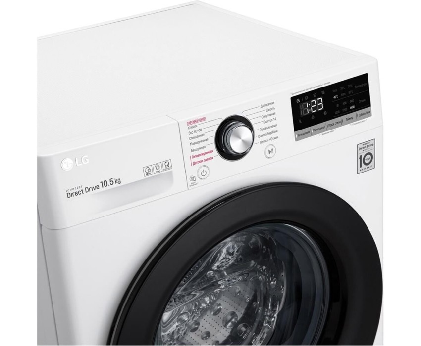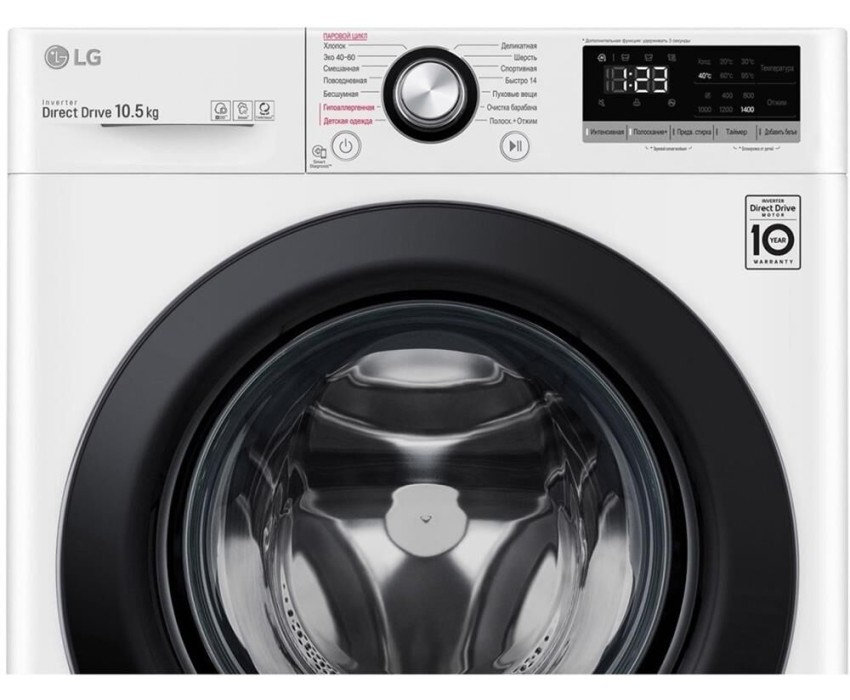 РАЗМЕРЫ (Ш х В х Г, ММ) 600 x 850 x 565 * ЗАГРУЗКА Стирка: 10.5 кг * Цвет белый, Цвет дверцы черный * Максимальная скорость отжима (об/мин) 1400 * Инверторный мотор с прямым приводом * Тип барабана Пузырьковый * ФУНКЦИЯ ПАРА * Управление Сенсорное * Детектор загрузки * Интеллектуальная система стирки AI DD * Диапазон температуры стирки ( ) Холодная/20/30/40/60/95 * Угол открытия дверцы 150° * Мобильная диагностика Smart Diagnosis *