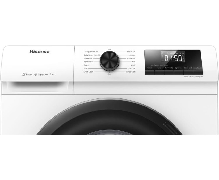 Стиральная машина Hisense WFQP7012VM, с фронтальной загрузкой, с паром, 7кг, 1200об/мин, инверторная, с английской панелью управления
