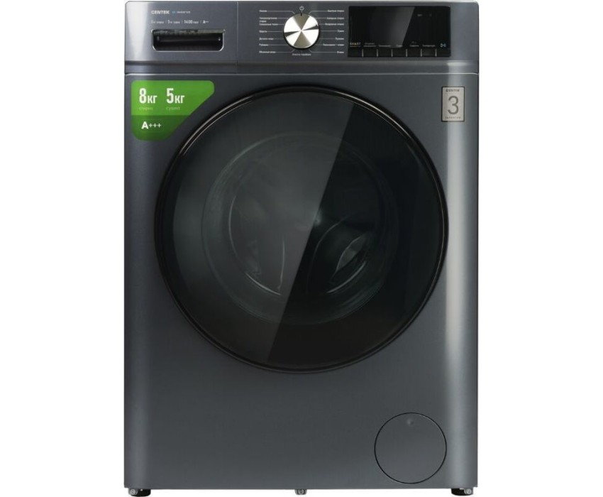 Стиральная машина Centek CT-1952 (серый) 1400 / 8кг / 52см / 11пр /Дисплей/ INVERTER /Сушка 5кг/A+++