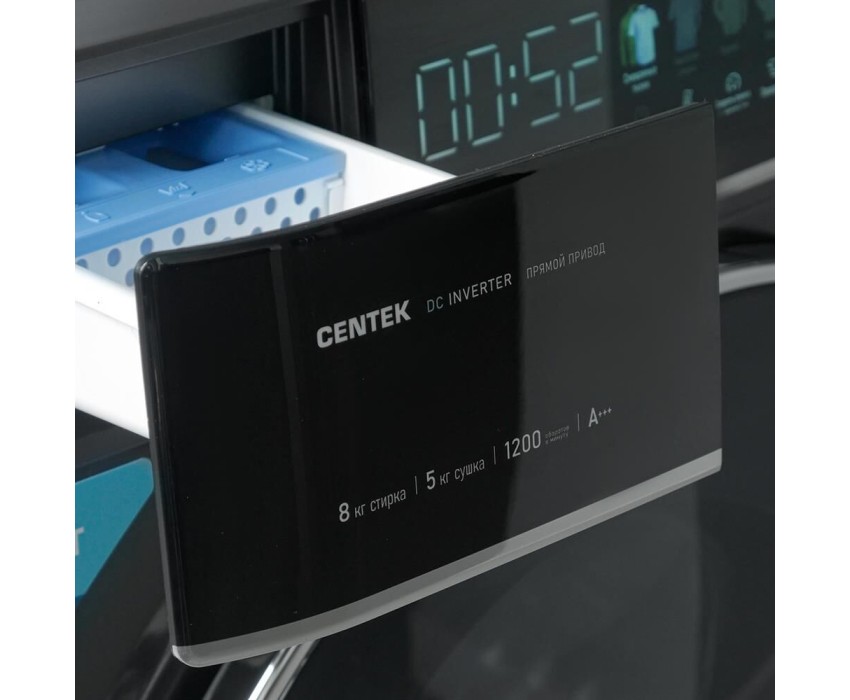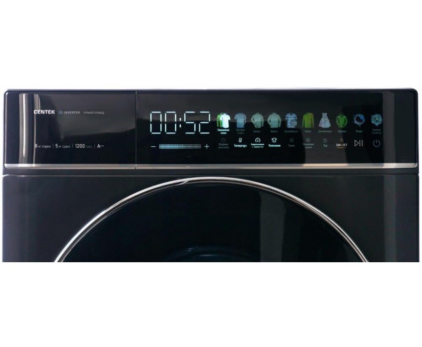 Стиральная машина Centek CT-1967 (черный) 1200/8кг/52см/Прямой привод/Цветной сенсор/Сушка 5кг/A+++