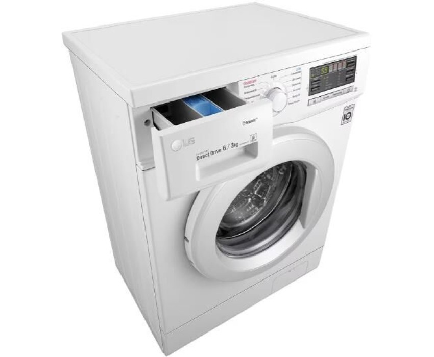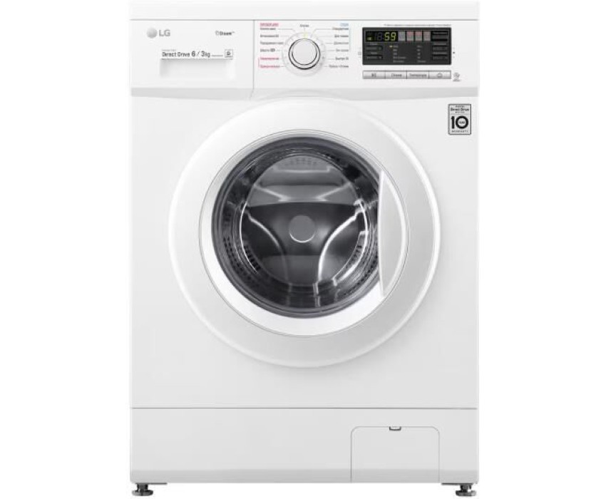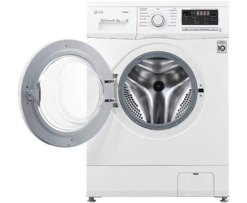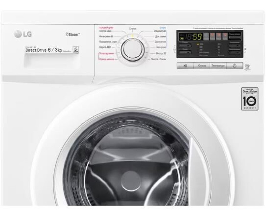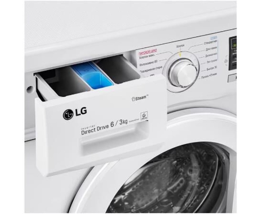 Габариты (ШхВхГ), см: 60х85х44; Цвет корпуса: Белый; Максимальная загрузка при стирке, кг: 6; Максимальная загрузка при сушке, кг: 3; Тип дисплея: Широкий LED; Таймер отсрочки; Индикатор блокировки двери; Основная технология: Inverter Direct Drive; Технология: Smart Diagnosis™; Инверторный мотор с прямым приводом; Технология "6 движений заботы"; Функция сушки; Автоперезапуск; Автовзвешивание; Регулирующиеся опоры, мм: 10; Пузырьковая поверхность барабана; Контроль пенообразования; Программы: Гипоаллергенная; Одежда малыша; Хлопок; Повседневная; Интенсивная; Быcтpо 30; Пoлocкание+Отжим; Шерсть; Класс энергоэффективности: D; Расход электроэнергии, кВт*ч: 6.30; Расход электроэнергии на стирку, кВт*ч: 1.02; Энергопотребление при стирке, отжиме и сушке за полный рабочий цикл, кВт*ч/цикл: 6.30; Энергопотребление только при стирке и отжиме за цикл стирки, кВт*ч/цикл: 1.02; Расход воды (общий), л: 165