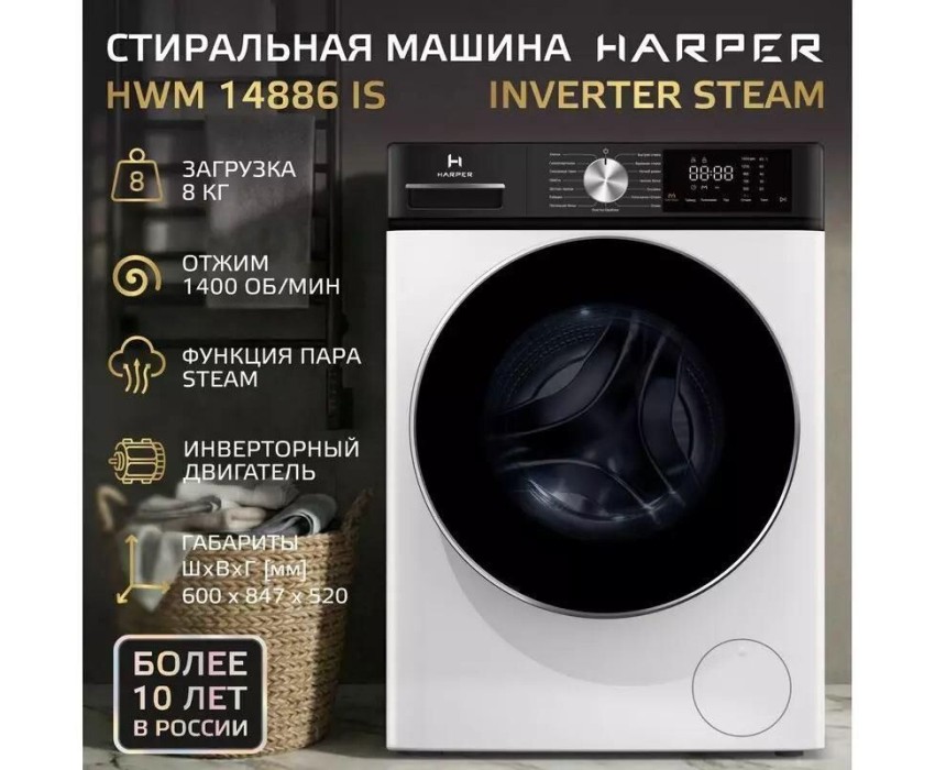 Стиральные машины HARPER HWM 14886 IS Inverter Steam