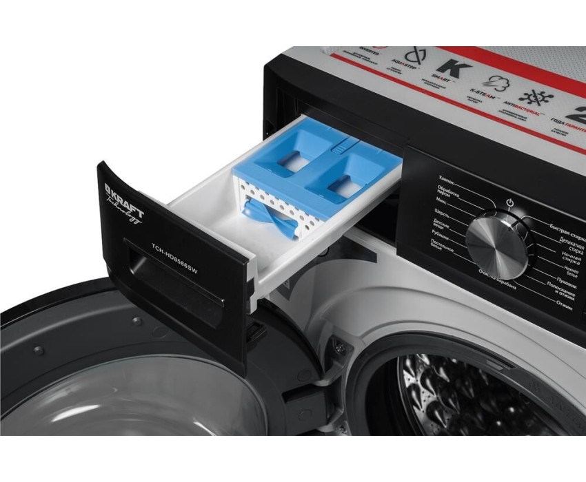 Стиральная машина KRAFT Стиральная машина TCH-HD8586SW, с фронтальной загрузкой, 8кг, 1400об/мин, с паром, инверторная