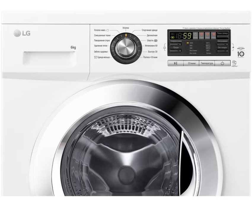 Габариты (ШxГxВ) 60x44x85см * Загрузка 6 кг * Максимальная скорость отжима (об/мин) 1000 * Кол-во программ 13 * Инверторный мотор с прямым приводом * Мобильная диагностика Smart Diagnosis * 6 движений заботы * Класс энергоэффективности А * Класс стирки А * Класс отжима В * Блокировка от детей * Функция очистки барабана * Цвет дверцы Хром. Цвет корпуса Белый *