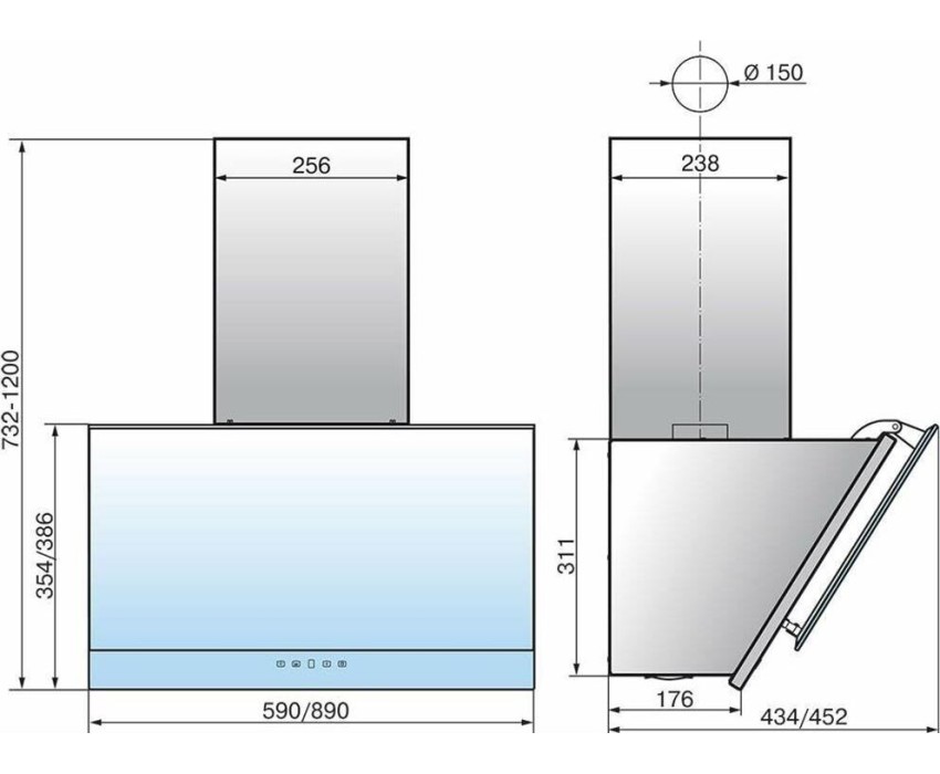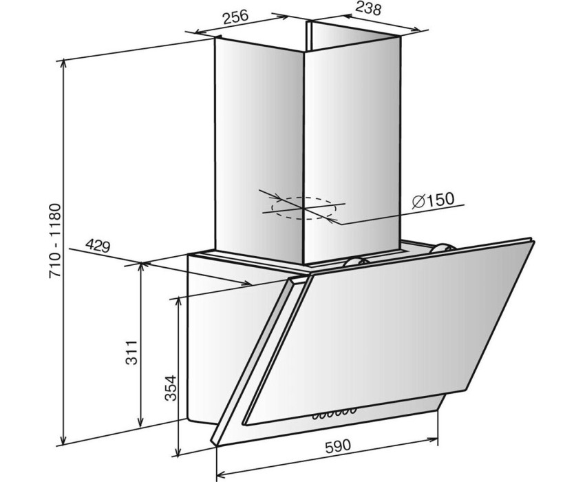 Каминная вытяжка, наклонная, монтируется к стене, отвод / циркуляция, макс. производительность 700 куб. м/ч, ширина для установки 60 см, мощность 225 Вт, электронное управление, тихий двигатель, дисплей, периметриальное всасывание