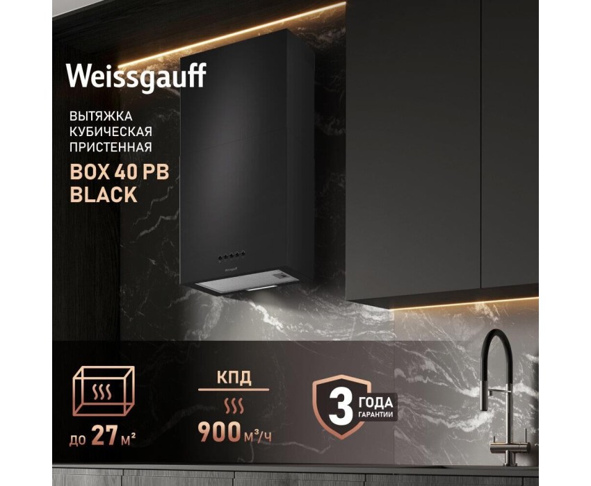 Вытяжка WEISSGAUFF Вытяжка каминная Box 40 PB, кнопочное управление, черный [433584]