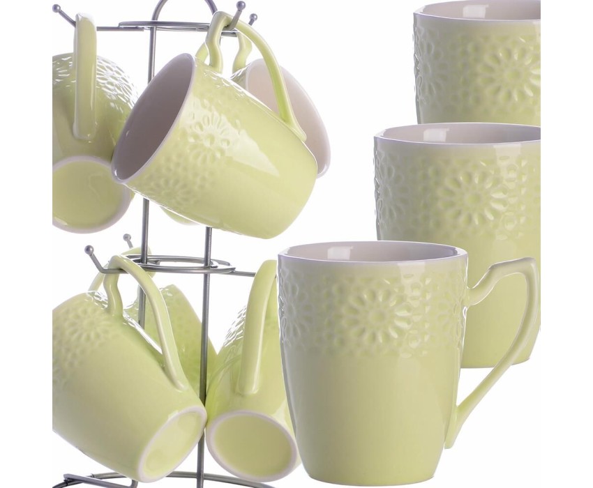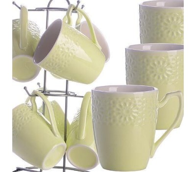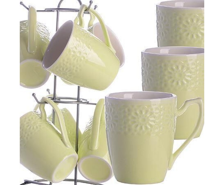 Набор чашек 7 пр LR (x6). Материал: фарфор. Цвет: желтый. Подставка: металл. Размер кружки: D 7,5 см, высота 8,8 см. Объем: 220 мл. Размер подставки: D 15 см, высота 28,5 см. Размер упаковки: 18 х 16,7 х 29,5 см. Упаковка: коробка. Вес: 1,5 кг. Страна производитель: Китай.