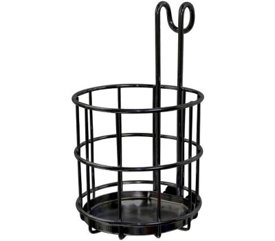 Подставка предназначена для хранения столовых приборов, кухонных аксессуаров, бутылок с жидкими специями или моющими средствами. В стильном черном цвете, она прекрасно впишется в черную рейлинговую систему. Подходит для рейлингов диаметром до 16 мм и с расстоянием от наружной части рейлинга до стены не более 3 см. Перед первым применением рекомендуется вымыть губкой или мягкой щеткой, можно с жидким моющим средством, сполоснуть и просушить. Не рекомендуется мыть в посудомоечной машине. Изготовлено из стальной проволоки с эмалевым покрытием. Размер 9,5х15,5х11 см.