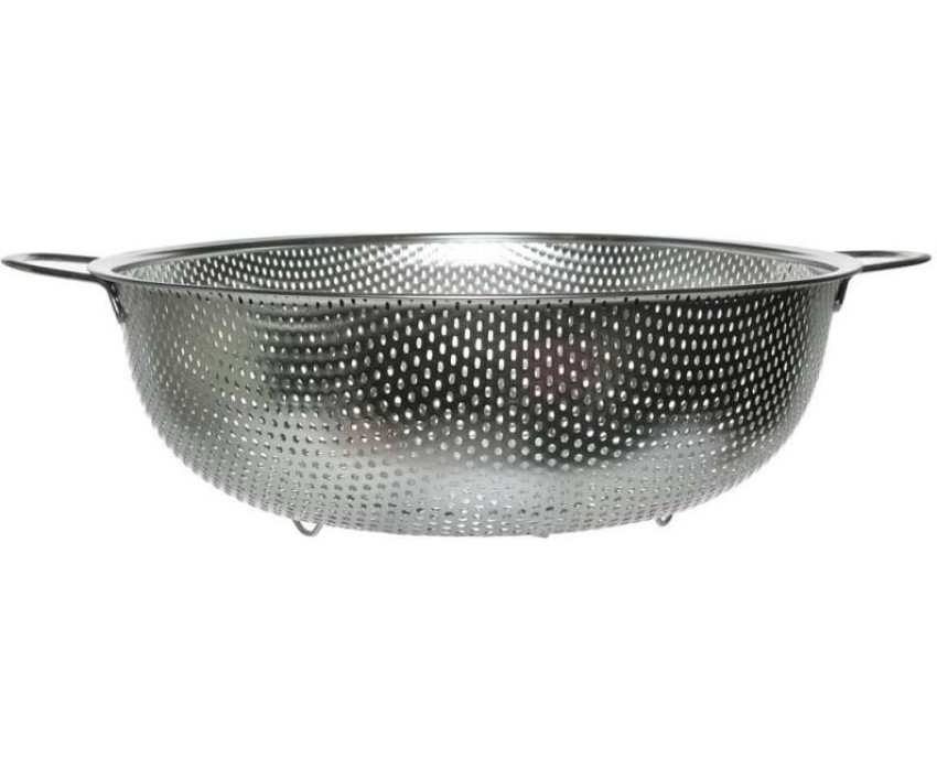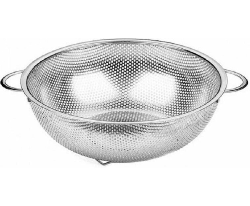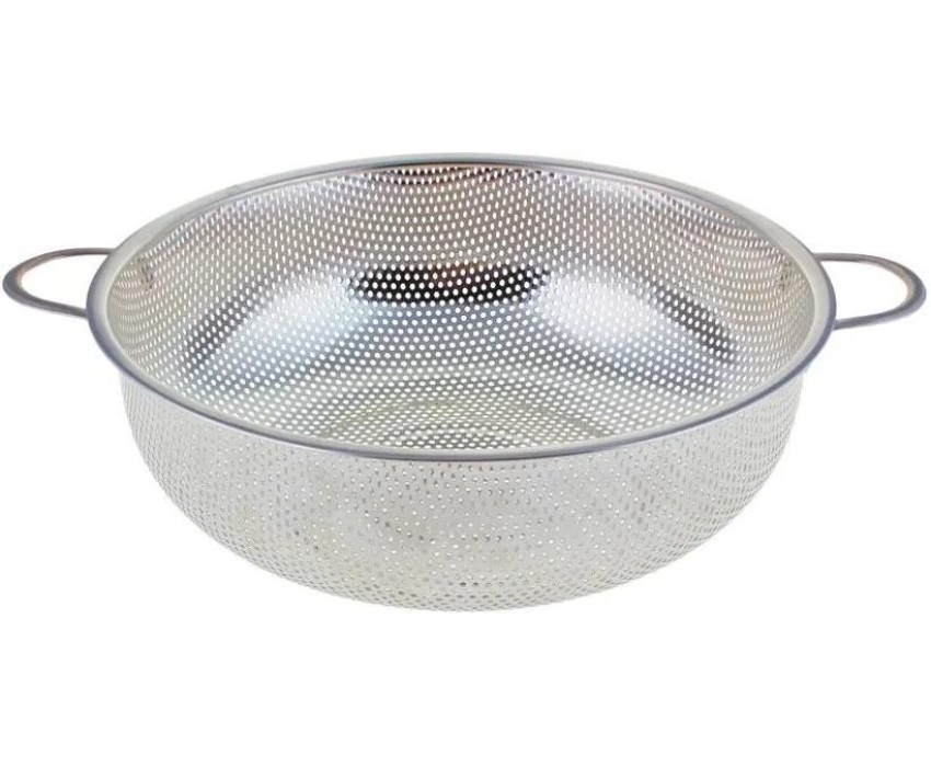 толщина 0,25мм, диаметр отверстий 2,5мм, может использоваться для промывки круп, фруктов или овощей, а так же для слива лишней жидкости с готовых макарон или лапши. Особенности: Имеет удобные ручки. Сделан из нержавеющей стали. Перфорация по всей площади.