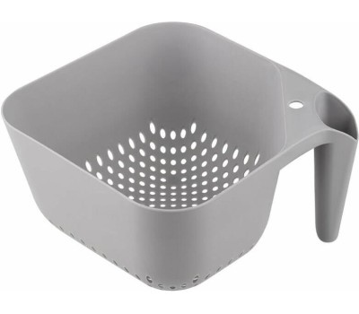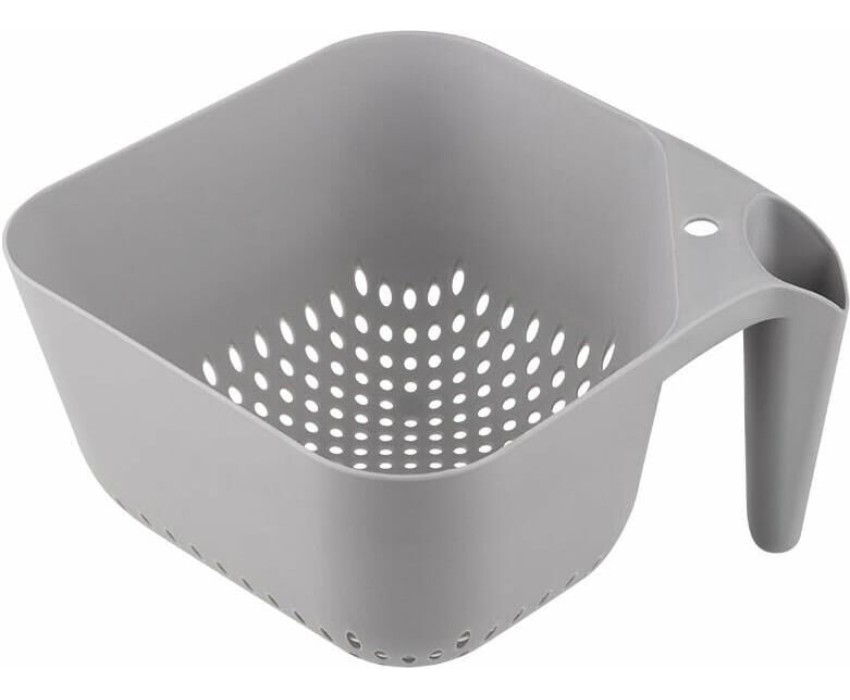Квадратная форма и эргономичная вертикальная рукоятка обеспечивает устойчивость на ровных поверхностях стола, раковины или полки. Дуршлаг идеально подходит для мытья ягод, фруктов, овощей и зелени. Размер: 19*19*11 см Емкость: 2,5 л Материал: полипропилен цвет: серый