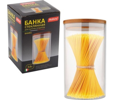 Стеклянная банка MALLONY Стеклянная банка для сыпучих продуктов с крышкой BAMBU, объем: 0,6 л (004450)