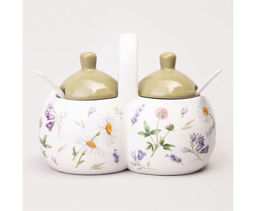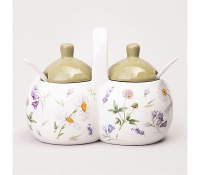 Емкость для хранения AGNESS БАНКА 2 СЕКЦИИ "FLOWER STORY" 17*10*13 СМ / 2x240 МЛ (КОР=24ШТ.) 358-2191