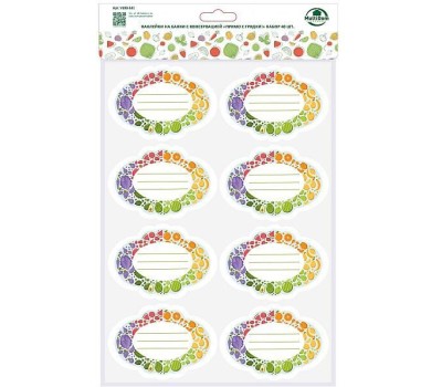 Самоклеящиеся наклейки предназначены для маркировки банок с овощными заготовками, салатами, вареньем, компотами. Также подойдут для маркировки крышек, контейнеров и баночек со специями и крупами. С помощью ярких наклеек вы сможете сохранить информацию о домашней заготовке, и указать дату изготовления. Клеить можно на любые не слишком рельефные поверхности. Поверхность должна быть чистая, сухая и обезжиренная. Наклейки расположены на листе, прорезаны по контуру, снимите ее с подложки и нанесите на поверхность. Изготовлено из бумаги с клеевым слоем. Размер одной наклейки: 10х7 см.