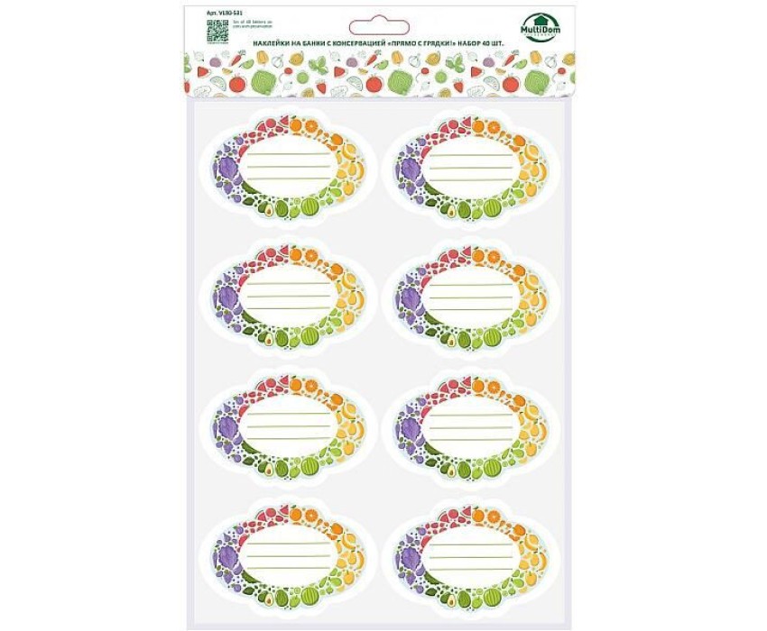 MULTIDOM Наклейки на банки с консервацией "Прямо с грядки ". Набор 40 шт. Размер 10х7 см VL80-531