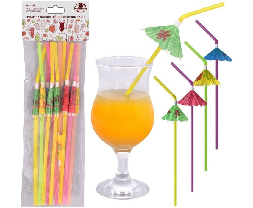 Трубочки для коктейля – необходимый атрибут любой вечеринки, будь то праздник, семейное мероприятие или романтическая встреча. Без трубочек не обходится практически ни один коктейль Разнообразная цветовая гамма трубочек и украшение декоративным зонтиком порадует ваших гостей и близких, а также украсит ваш праздничный стол. Внимание Бумажные декоративные зонтики нельзя обрабатывать водой. Изготовлено: пластмасса (полипропилен), бумага. Длина 24 см, диаметр 0,5 см.