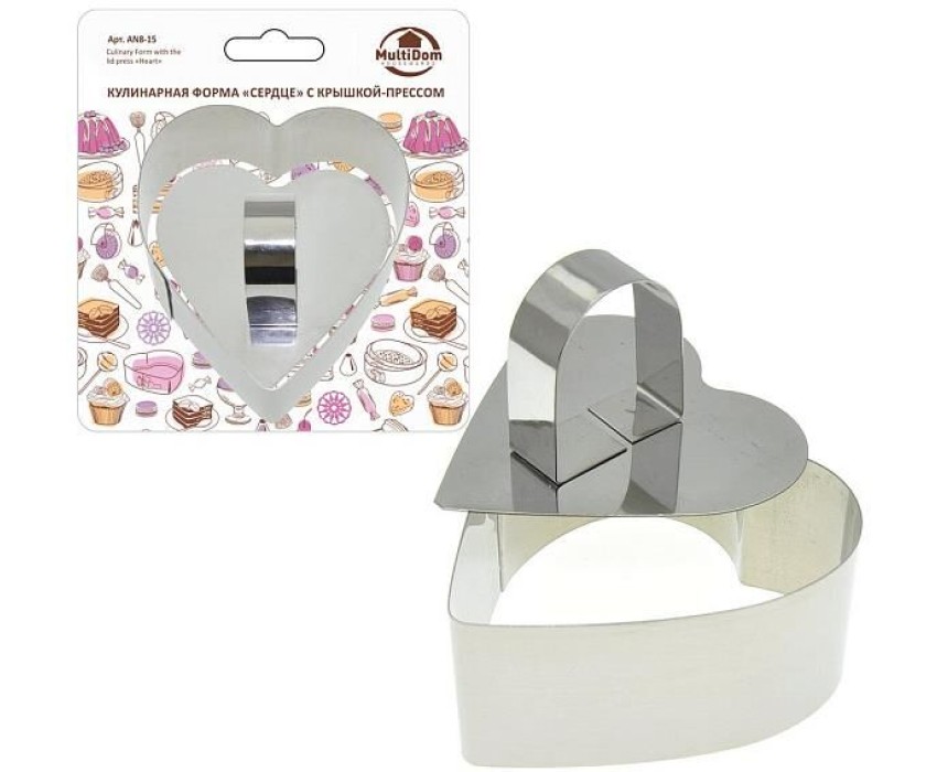 MULTIDOM Кулинарная форма "Сердце" 8х9х4 см с крышкой-прессом AN8-15
