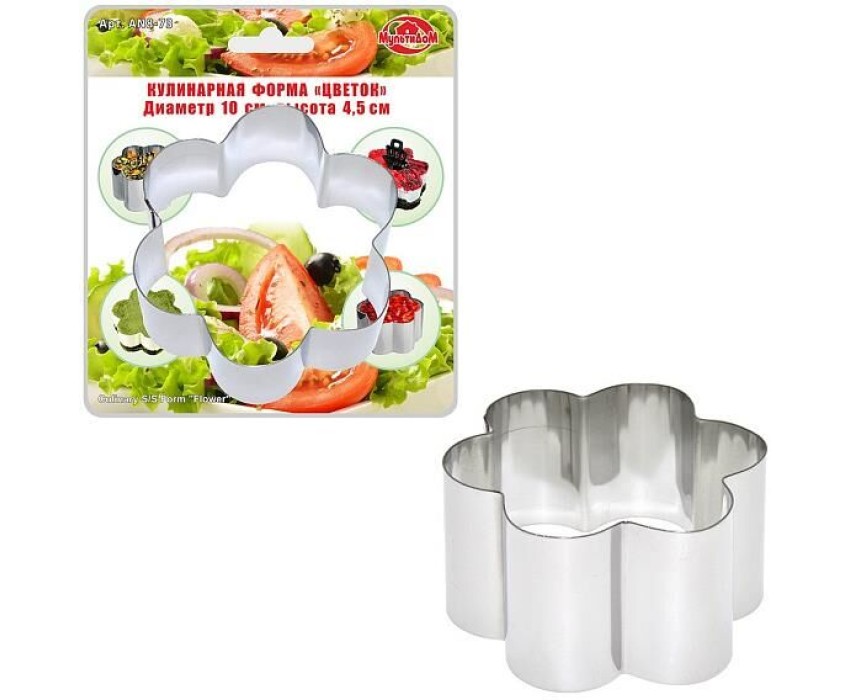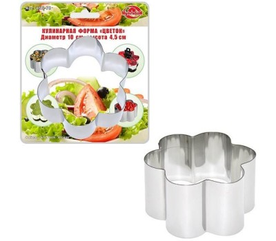 Кулинарные формы-удобный и незаменимый инструмент в арсенале каждой хозяйки для подготовки праздничного стола. Эти специальные полые формы используются для оформления блюд, помогут сервировать закуски и десерты, пригодятся для сборки бутербродов и канапе, а также с их помощью можно вырезать идеально ровные фигуры из теста и даже пожарить аккуратный омлет или глазунью. Применение формы при сервировке позволит удивить гостей эффектными шедеврами кулинарного искусства – вы сможете красиво подать на стол практически любые салаты, закуски и блюда, которым необходимо придать идеальную строгость форм. Таким образом, с помощью кулинарных форм Вы сможете превратить домашний ужин в настоящий изысканный банкет, с лучшими традициями ресторанной сервировки! Изготовлено из коррозионностойкой (нержавеющей) стали.