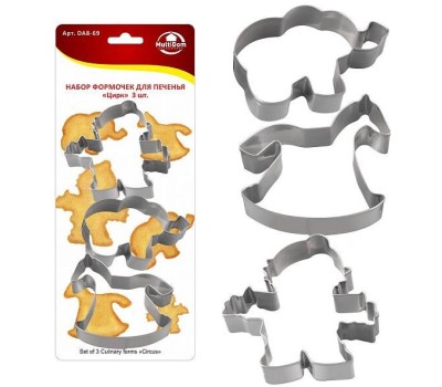MULTIDOM Набор формочек для печенья "Цирк" 3 шт. Размеры 8,5х8,5/7,7х9/8х5,8 см. DA8-69
