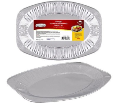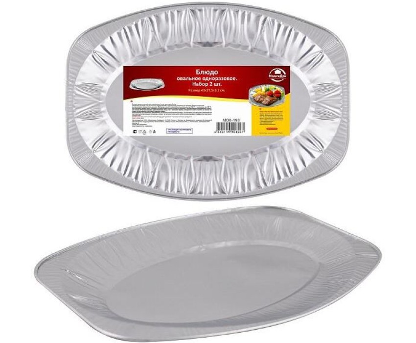 MULTIDOM Блюдо овальное одноразовое. Размер 43х27,5х3,2см. Набор 2шт. (алюминий) МО8-198