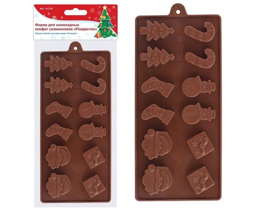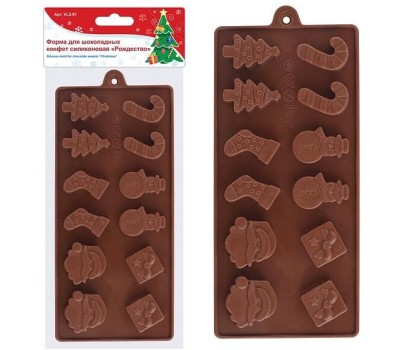 MULTIDOM Форма для шоколадных конфет силиконовая "Рождество". Размер 22,5х10х1,5см. VL2-91