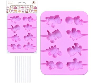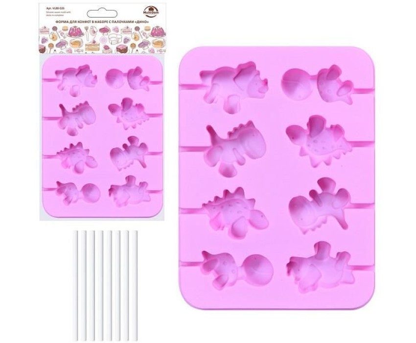 MULTIDOM Форма для конфет в наборе с палочками "Дино". Размер 14,6х11,4х1,6 см. VL80-526