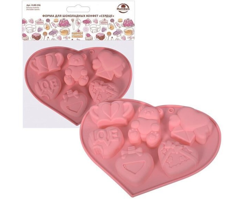 MULTIDOM Форма для шоколадных конфет "Сердце". Размер 20,5х14х2 см. VL80-556