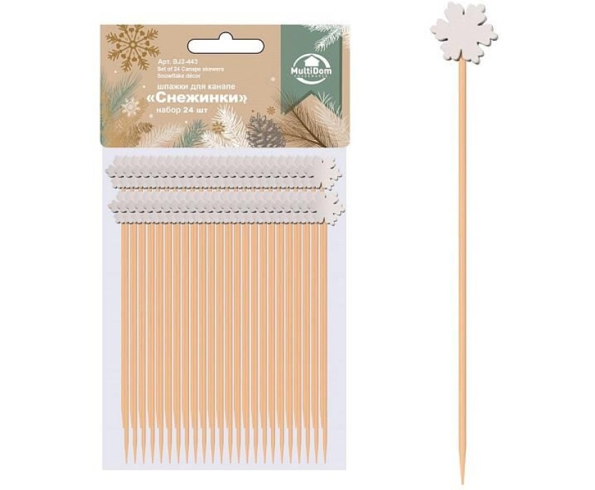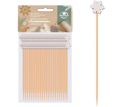 MULTIDOM Шпажки для канапе "Снежинки". Набор 24 шт. Длина 12 см. BJ2-443