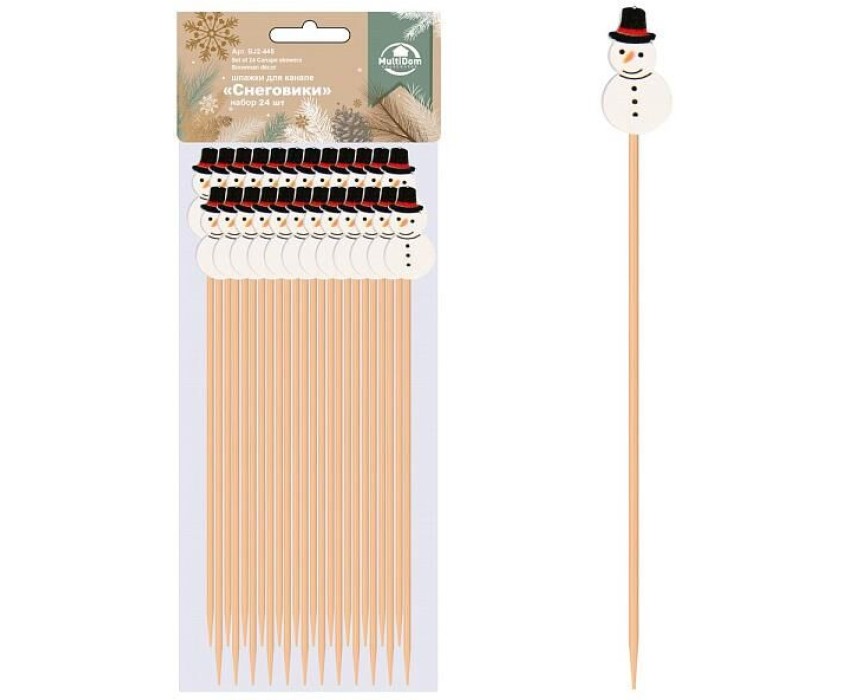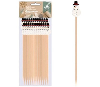 MULTIDOM Шпажки для канапе "Снеговики". Набор 24 шт. Длина 12 см. BJ2-445