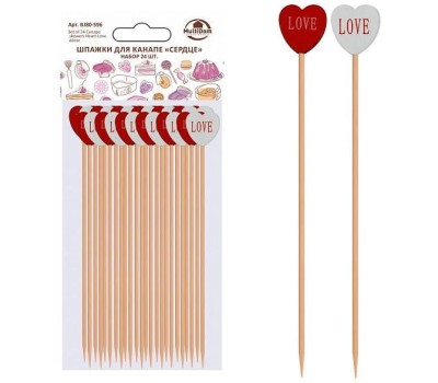 MULTIDOM Шпажки для канапе "Сердце". Набор 24 шт. Длина 12 см. BJ80-596