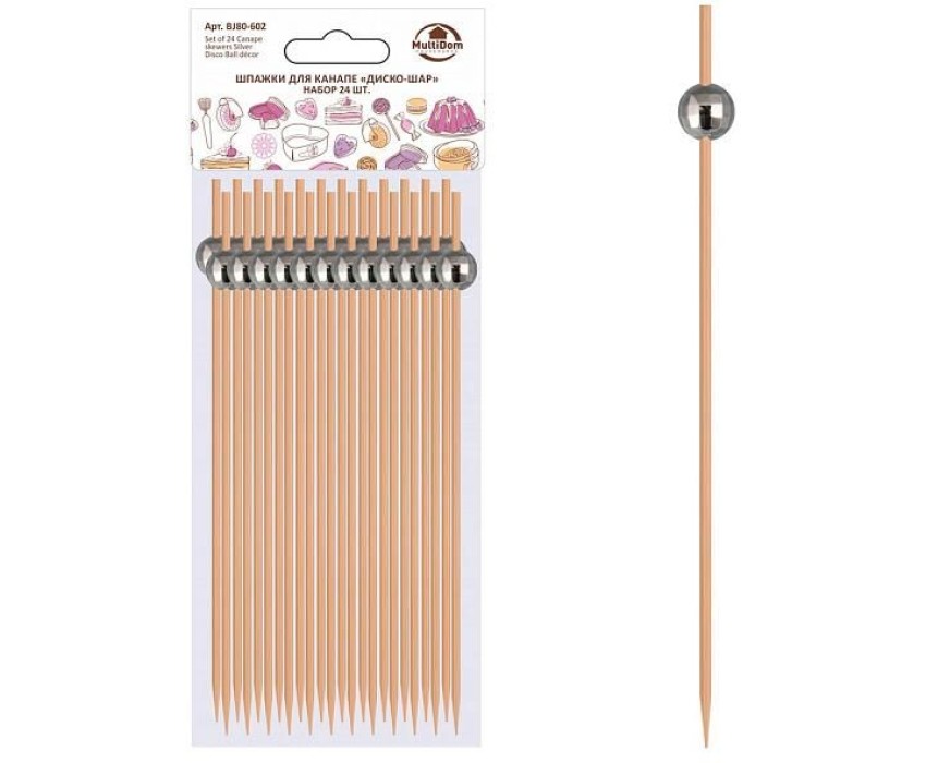 MULTIDOM Шпажки* для канапе "Диско-шар" (серебро). Набор 24 шт. Длина 12 см. BJ80-602