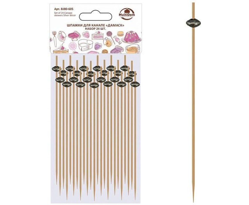 MULTIDOM Шпажки для канапе "Дамаск". Набор 24 шт. Длина 12 см. BJ80-605