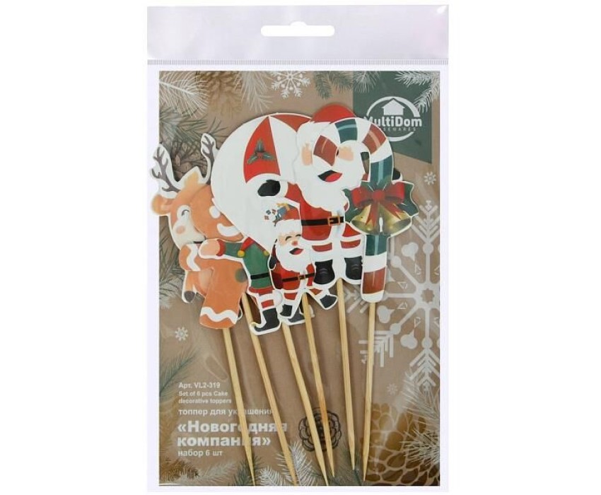 MULTIDOM Топпер для украшения "Новогодняя компания". Набор 6 шт. Длина 14 см. VL2-319