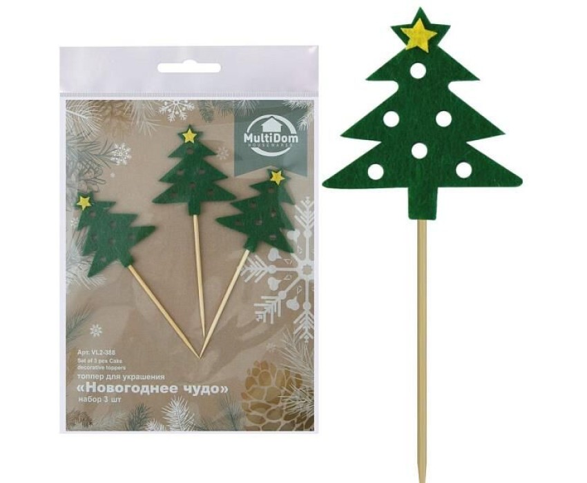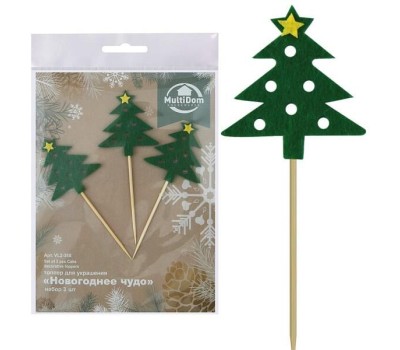 MULTIDOM Топпер для украшения "Новогоднее чудо". Набор 3 шт. Длина 10 см. VL2-388