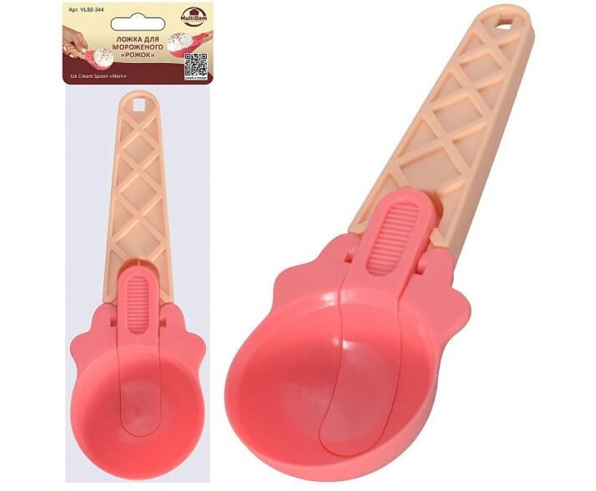 Как красиво оформить шарики мороженого? С помощью специальной ложки накладывать мороженое будет гораздо проще. Кнопка-выталкиватель позволяет одним движением вытолкнуть шарик, который не прилипнет и будет идеально ровным. Инструмент можно использовать для других десертов, для кремообразных холодных закусок и салатов. Креативный дизайн ложки, выполненной в виде рожка с мороженым, создаст отличное настроение праздника и будет забавным подарком любителям мороженого. Ложка проста в обращении, легко моется. Изготовлено: пластмасса (полистирол). Общая длина 19см.