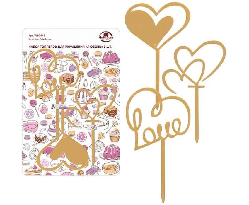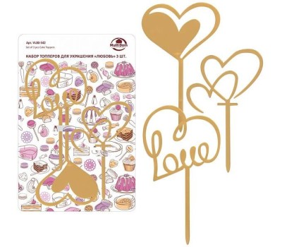 MULTIDOM Набор топперов для украшения "Любовь" 3 шт. Размер 6х10 см. VL80-542