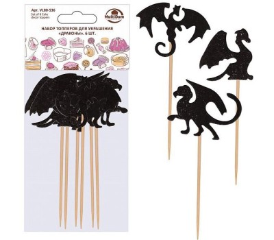 MULTIDOM Набор топперов для украшения "Драконы". 6 шт. Размер 13,5х6,5 см. VL80-536