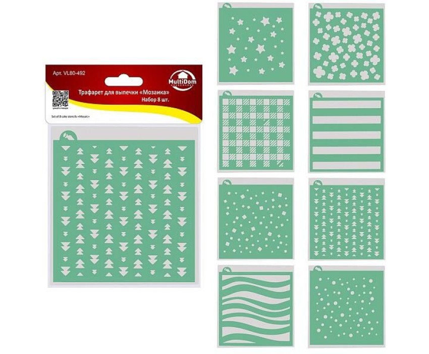 MULTIDOM Трафарет для выпечки "Мозаика". Набор 8шт. Размер 14х15см VL80-492