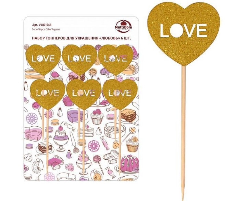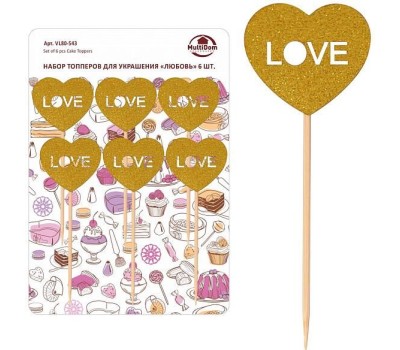 MULTIDOM Набор топперов для украшения "Любовь" 6 шт. Размер 4х12 см. VL80-543