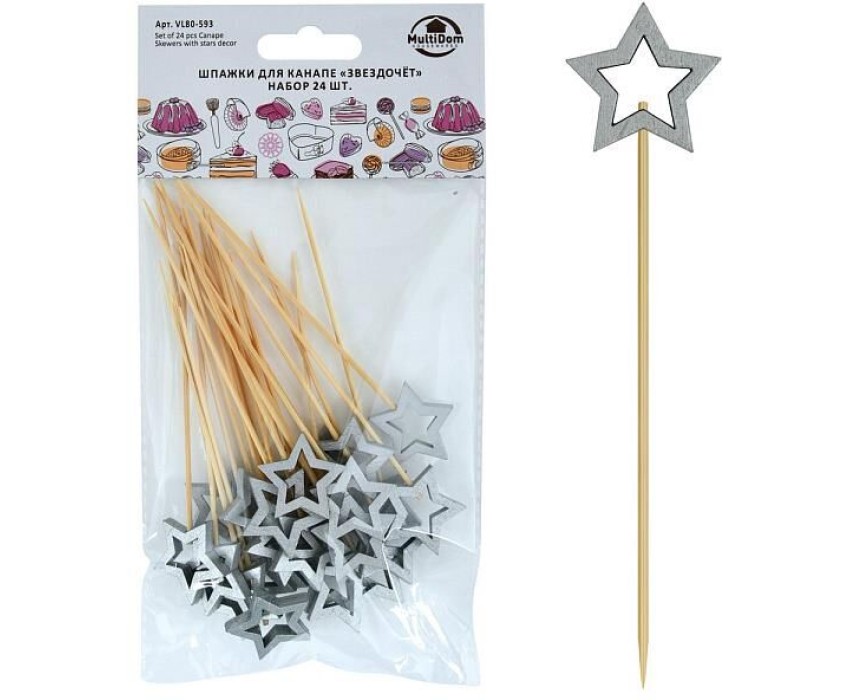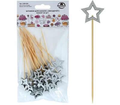 MULTIDOM Шпажки для канапе "Звездочет" (серебро). Набор 24 шт. Длина 12 см. VL80-593