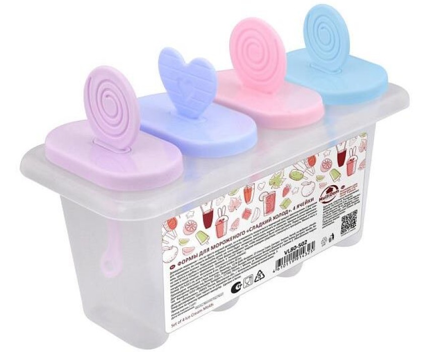 MULTIDOM Формы для мороженого "Сладкий холод". 4 ячейки. Размер 15х7х10,5 см. VL80-502