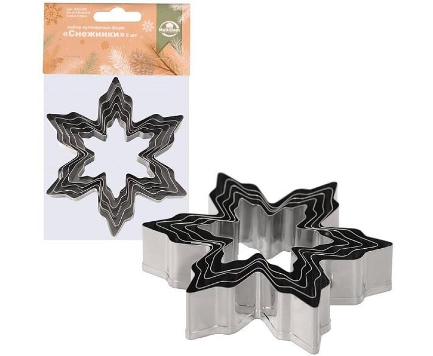 MULTIDOM Набор кулинарных форм "Снежинки". 5 шт. Размеры: 5,6,7,8,9 см, высота 2 см DA2-301