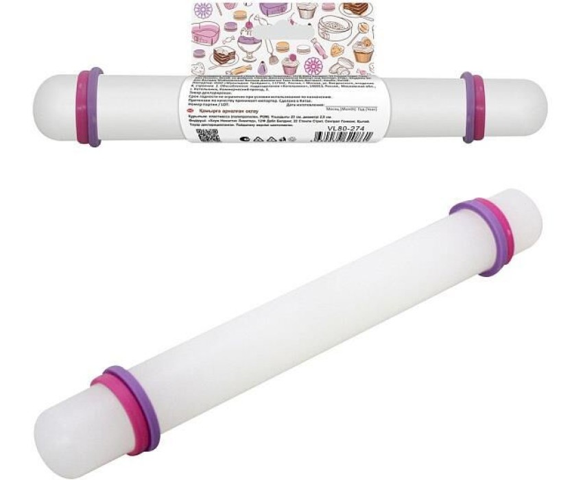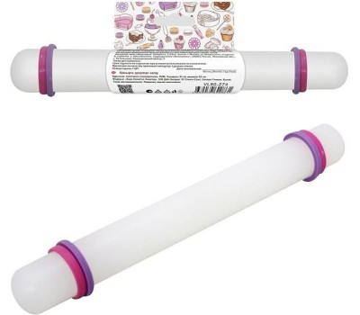 Очень часто те, кто увлекается выпечкой сталкиваются с проблемой теста или мастики, раскатанных разной толщиной. Как равномерно раскатать тонкое тесто или мастику? Используя скалку с кольцами, вы получите тесто или мастику одинаковой толщины. Натяните одинаковые кольца с двух сторон и приступайте к раскатке. Расстояние от внешнего края кольца до корпуса скалки и будет равняться нужной толщине теста или мастики. Компактная и удобная – скалка не занимает много места при работе или хранении. С помощью этой скалки можно раскатать тесто или мастику толщиной 0,15см и 0,30см. Скалка проста в уходе, гигиенична, легко моется с использованием жидких моющих средств. Изготовлено из пластмассы (полипропилен, РОМ). Длина 23см, диаметр 2,5см.