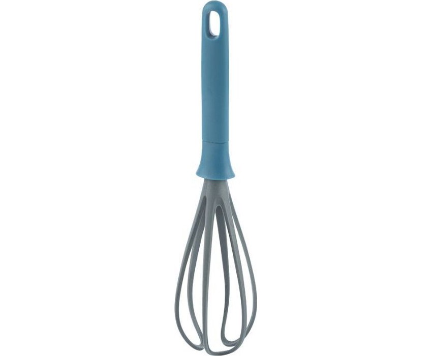 Венчик из нейлона с ручкой из полипропилена Рабочая часть из нейлона, ручка из полипропилена, размер: 30*7,1*6,5 см. Цветная картонная подложка. *На ручке расположена подставка для удобства использования в горизонтальной и вертикальной плоскости. В горизонтальной — не пачкает рабочую поверхность, в вертикальной — удобство хранения после/во время использования. Температурный режим: от -20℃ до +210℃.