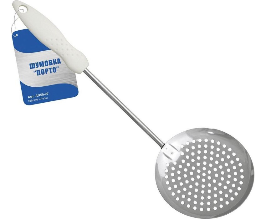 Шумовка "Порто" хром с белой ручкой AN50-27 Материал: Металл (Сталь хромированная), Пластмасса